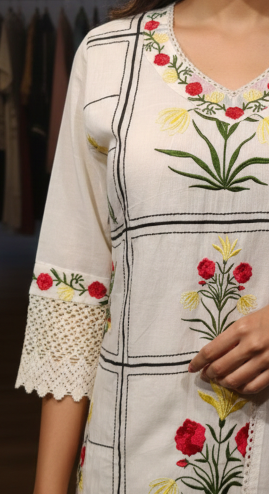 Cotton Linen Patch Work Shirt With Printed Palazzo