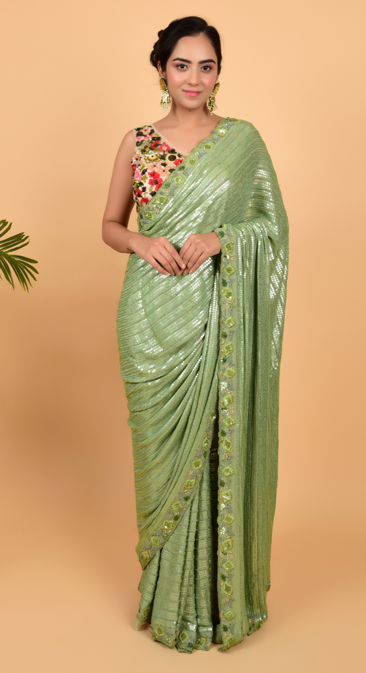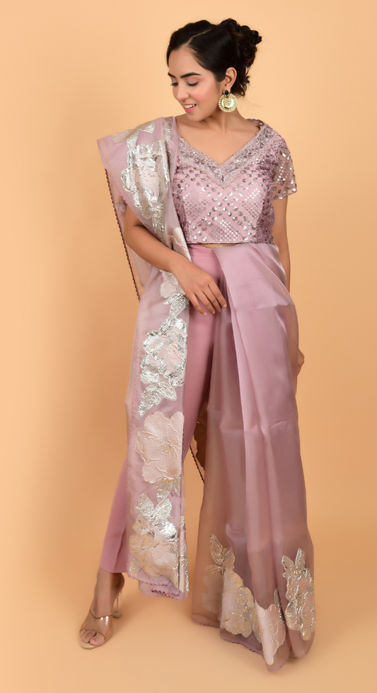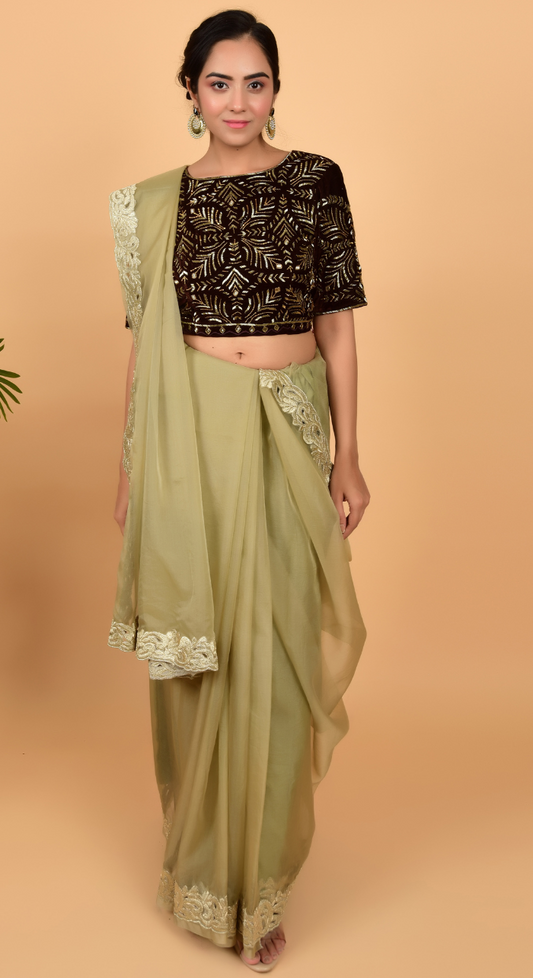 Shimmer Tissue Organza Saree With Velvet Blouse
